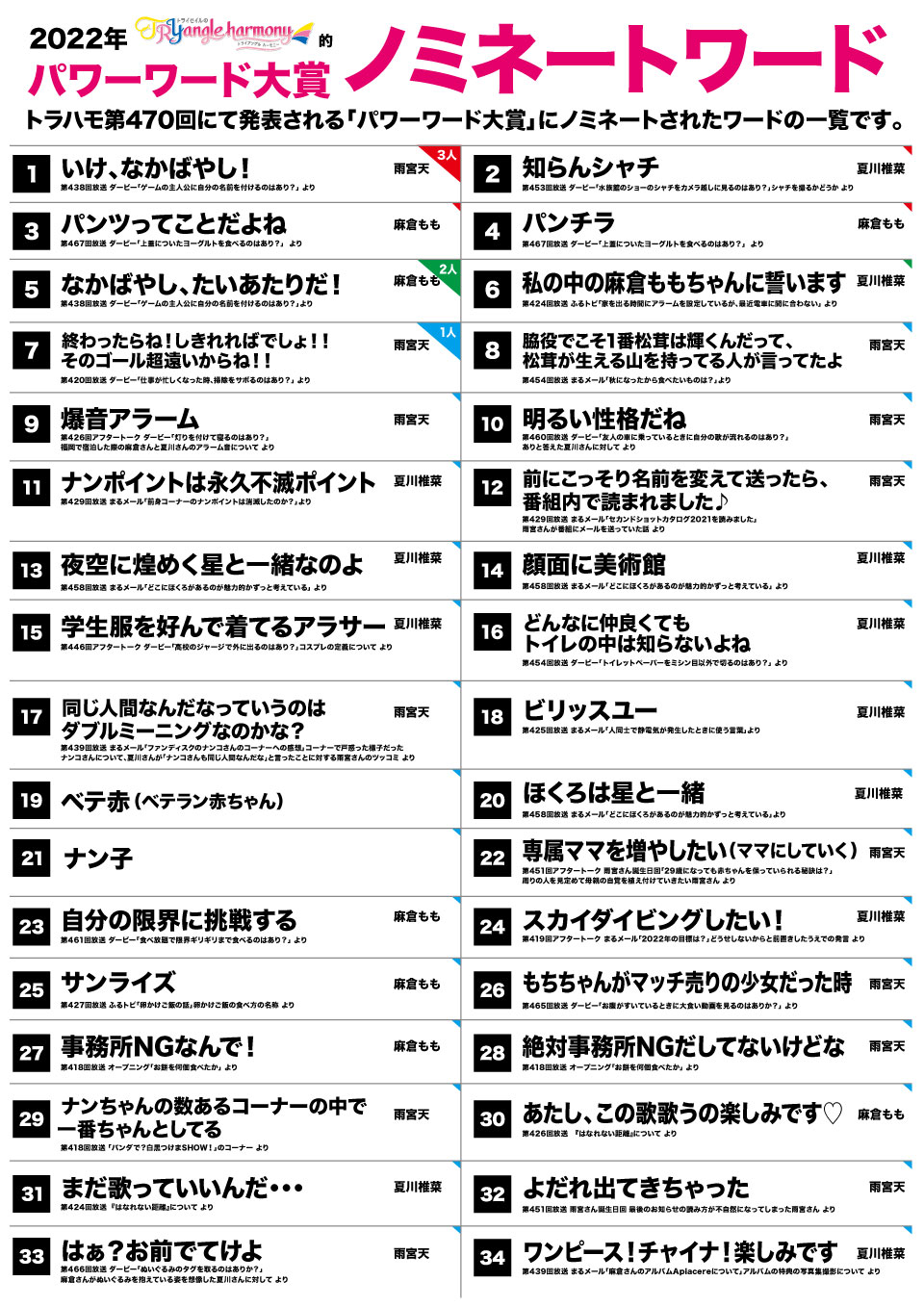 ★2022年トラハモ的パワーワード大賞ノミネートワードを掲載いたしました。